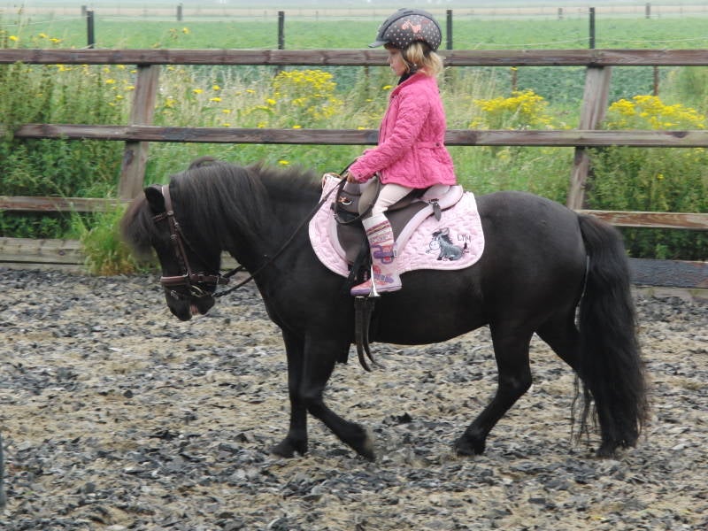 Begin oktober hebben we Wendela verkocht aan de familie Hammink in Bornerbroek. Inmiddels heeft ze in nieuw baasje gekregen en woont nu bij Yvonne en Robin Heijboer, vlakbij Rotterdam. Uit het contact wat we gehad hebben met Yvonne en Robin blijkt dat Wendela het bijzonder goed getroffen heeft. Ze is nu rij/knuffelpony voor Robin, het 4 jarig dochterje van Yvonne. Wendela, nu Wendy genaamd doet het heel braaf als rijpony en Yvonne en Robin zijn dan ook erg blij met haar. We hebben inmiddels enkele leuke foto's van ze ontvangen.